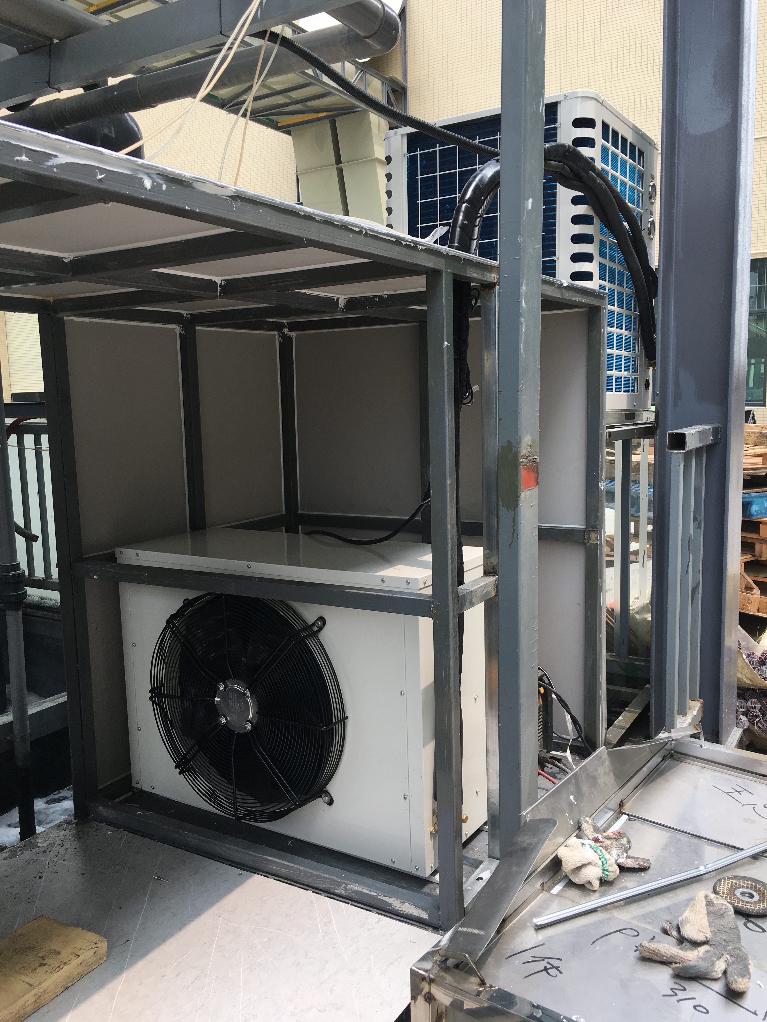 3匹分體式高溫熱泵烘干機安裝于廣東省清遠市清新區(qū)金鐘汽車配件廠